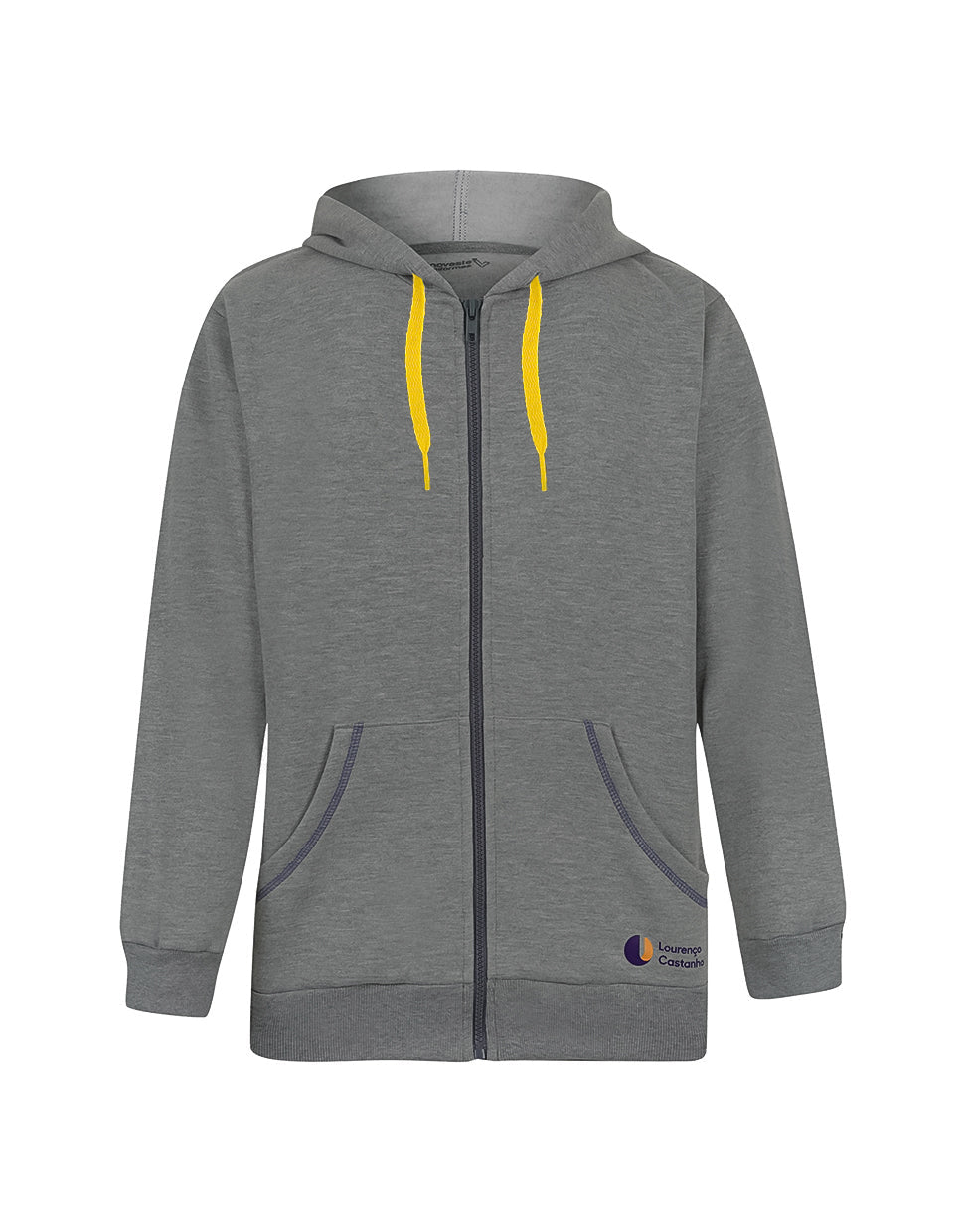 - Blusão de Moletom confeccionado com malha felpada 50%Algodão/50% poliéster certificada BCI, Organização Internacional que garante a produção de toda a cadeia do algodão de forma sustentável;