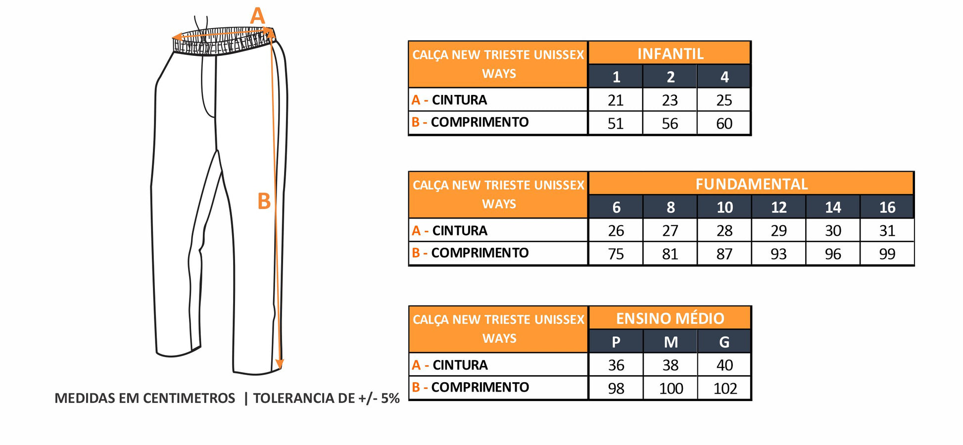- Calça de New Trieste Unissex confeccionada com malha 95% Poliéster 5%Elastano;